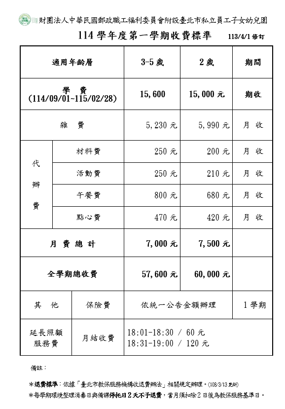 © 財團法人中華民國郵政職工福利委員會附設臺北市私立員工子女幼兒園 All Rights Reserved.